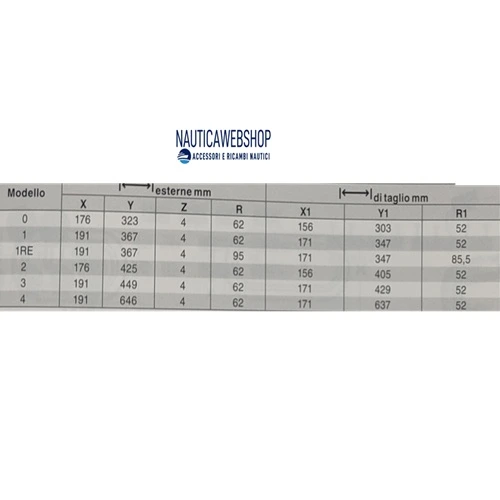 - riferimento oblo’ modello 0 con misure esterne 176×323 mm e taglio 156×303 mm