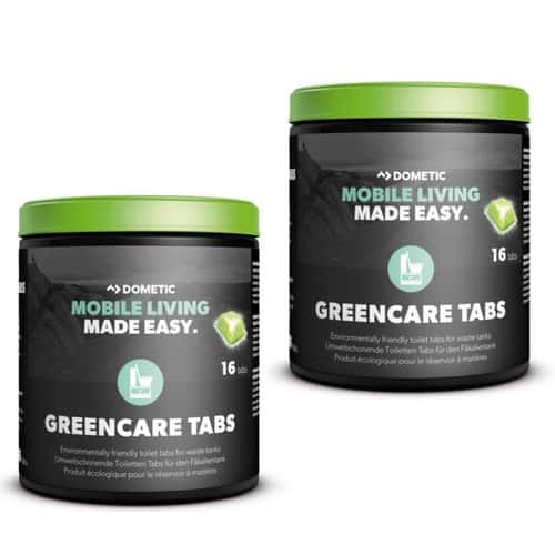 Le pastiglie ecologiche GreenCare tabs sono adatte per il trattamento delle acque nere e per tutte le toilette portatili e a cassetta. Sono leggere, facili da trasportare e consentono un dosaggio preciso. Le GreenCare tabs rendono liquidi i rifiuti, controllano la formazione di gas e prevengono la diffusione di odori sgradevoli.