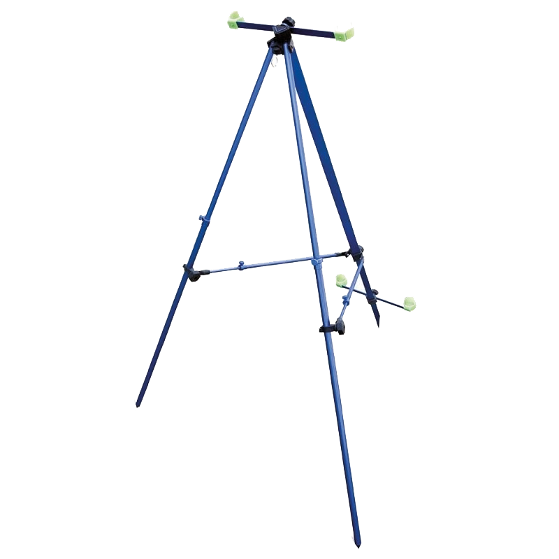 Tripode in alluminio, struttura adatta a tutti i tipi di superfice. Munito di portacanne e bicchierini fluorescenti. Indicato per la pesca a surfcasting e beach ledgering.
