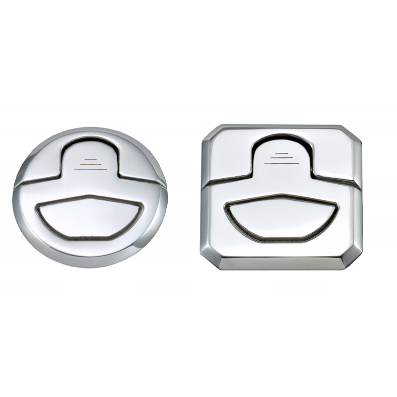 Alzapagliolo antivibrantein acciaio inox AISI 316 lucidato a specchio, stagno. Maniglia a filo dotata di molla, fissaggio tramite viti non a vista.