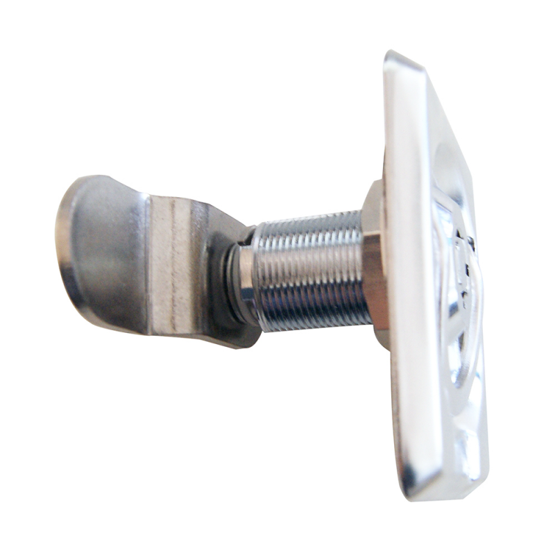 Serratura da incasso in acciaio inox, con maniglia a filo e cilindro.Dim. mm. 52×49.