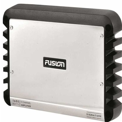 Amplificatore marino Fusion SG-DA51600 classe D a cinque canali, pannello frontale in acciaio inox con dissipatori in Alluminio. Completo di crossover variabili e protezione da picchi di tensione.