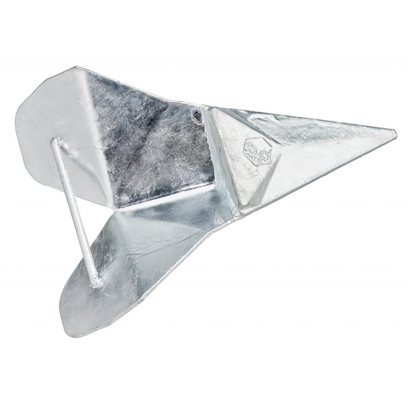 Ancora in acciaio zincato a vomere con punta zavorrata ad alta capacità di penetrazione e tenuta con qualsiasi fondale (alghe incluse), rapida a riprendere la presa quando la barca ruotando tende a spedare. Consigliata per barche fino a 12 metri Peso Kg.6.
