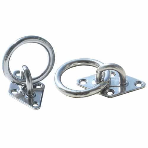 Anello con piastrina romboidale in ACCIAIO INOX AISI 316 con quattro fori per il fissaggio.