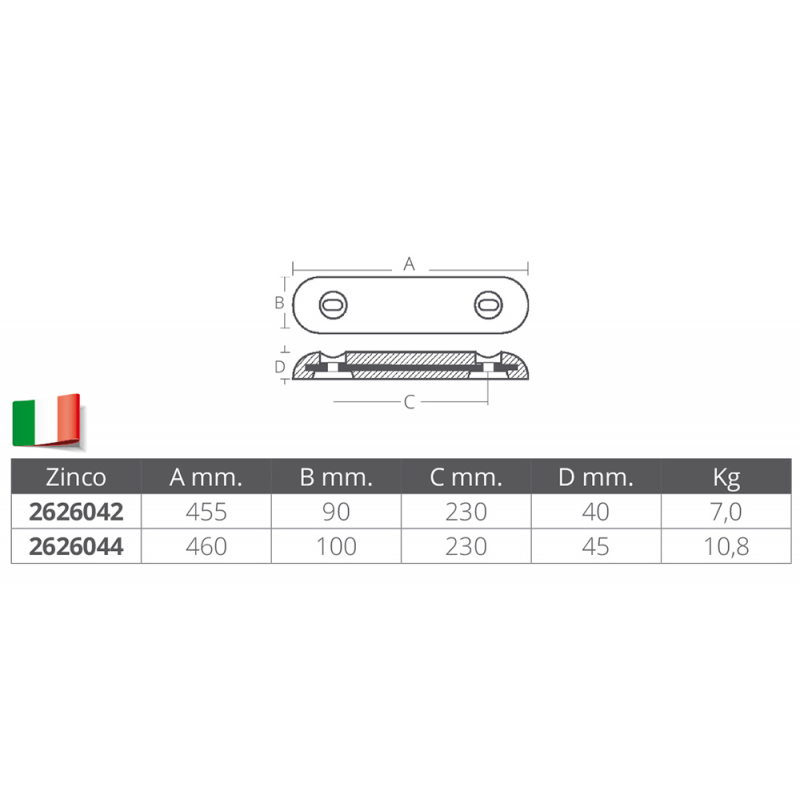 ANODO FAIR LINE MM.460x100x45h, ANODO FAIR LINE MM.455x90x40h