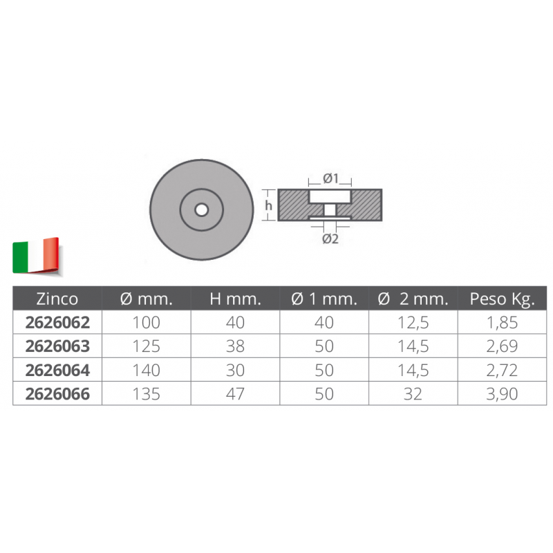 ANODO TONDO Ø MM.125 H.38, ANODO TONDO Ø MM.135 H.30, ANODO TONDO Ø MM.100 H.40