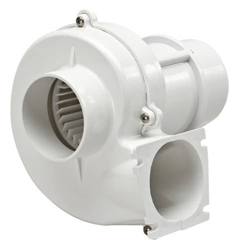 Aspiratore ventilatore gas di colore bianco con montaggio a flangia, facilmente installabile su qualsiasi superficie per mezzo di viti. Costruito in plastica rinforzata anticorrosione, con motore silenzioso, assicura una costante ed efficiente uscita d’aria.