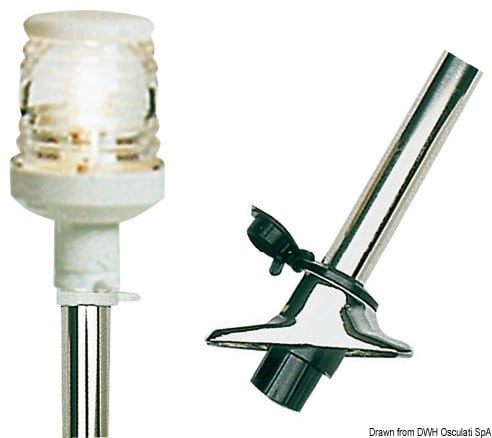 E’ provvista di una speciale basetta in acciaio inox AISI 316 con contatti a scatto. Inserendo l’asta nella basetta, si attiva automaticamente il contatto. Quando l’asta é rimossa una speciale piastrina a molla copre il foro della basetta onde evitare che i poli elettrici si possano ossidare.