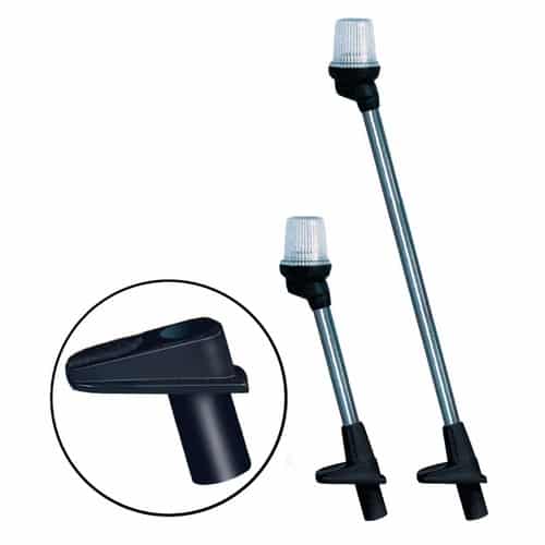 Asta estraibile presa/spina, con tubo in ACCIAIO INOX AISI 316 e base in fibra di nylon. Monta luce con lente in policarbonato sigillata con guarnizione in nitrile a tenuta stagna. Con certificato: R.I.Na. (I) DOT (AUS),(UK), (S.A.) EEP (GR) SN (F) NMD (N), DGMM (ES).