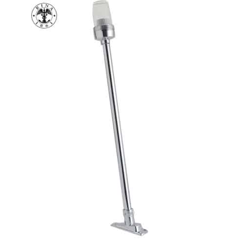 Asta luminosa telescopica in ottone cromato con regolazione autobloccante a varie altezze. Fanale di fonda 360° omologato R.I.Na.