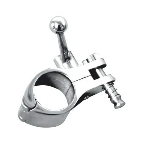 Attacco per capottina a manicotto a sgancio rapido in acciaio inox lucidato a specchio, versione con morsetto a camme ad azionamento rapido.