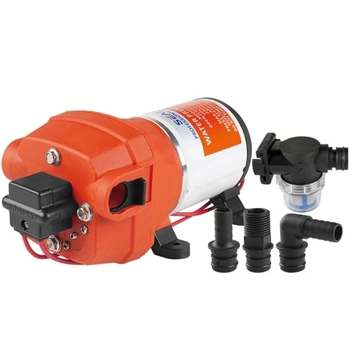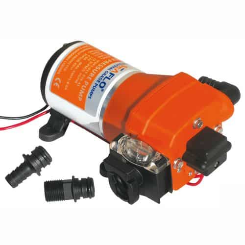 Autoclave automatica “SEAFLO” autoadescante completo di raccordo e filtro di aspirazione ad innesto rapido. Dotate di termico sul motore che le arrestano in caso di surriscaldamento accidentale. Pompa autoclave per utilizzo impianto doccia e altri servizi.