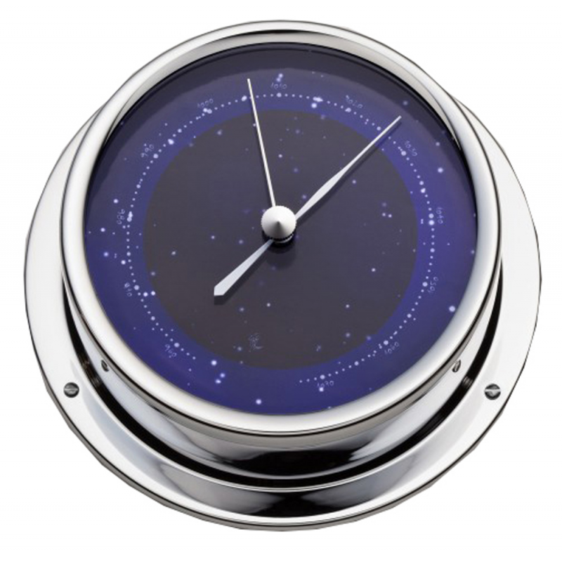 Strumento di bordo in ottone cromato con quadrante blu