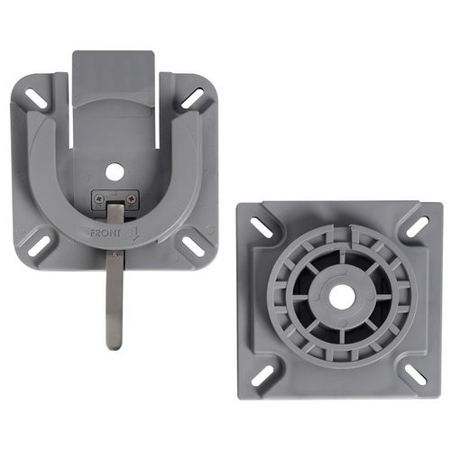 Base  in plastica con sgancio rapido con posizione fronte marcia bloccata e rotazione a 360° frizionata.