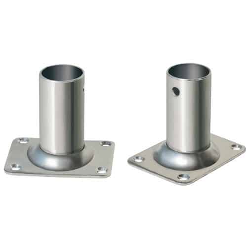 Base rettangolare a 90 gradi realizzata completamente in acciaio inox AISI 316 per tubi con diametro 22 e 25mm.