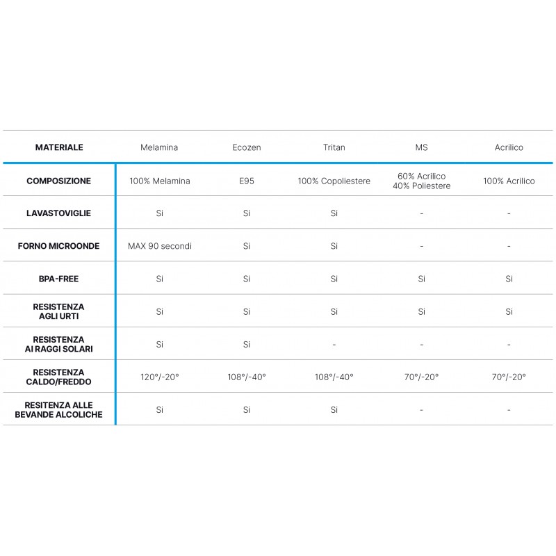 Prodotti in MS, BPA Free. Perfetti per la vita a bordo, poiché ultra resistenti a cadute e graffi.