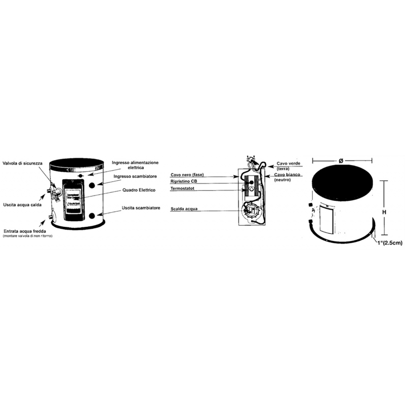 Boiler costruiti per montaggio in piano, funzionamento elettrico e con scambiatore di calore. Il serbatoio in acciaio è rivestito di vetro per un’alta efficenza e durata nel tempo. Il rivestimento esterno è in polimero resistente alla corrosione da umidità. Isolamento in poliuretano espanso (privo di CFC) per mantenere più a lungo il calore. Garanzia di 5 anni sui serbatoi. Anodo al magnesio anti corrosione. Valvola di sfiato di 75 PSI, temperatura e pressione. Termostato regolabile da 45 a 80°C. Tutti i modelli hanno i raccordi dell’impianto idraulico dallo stesso lato per facilitare l’istallazione. I raccordi acqua calda-fredda sono 3/4 maschio, dello scambiatore di calore 3/4 femmina.