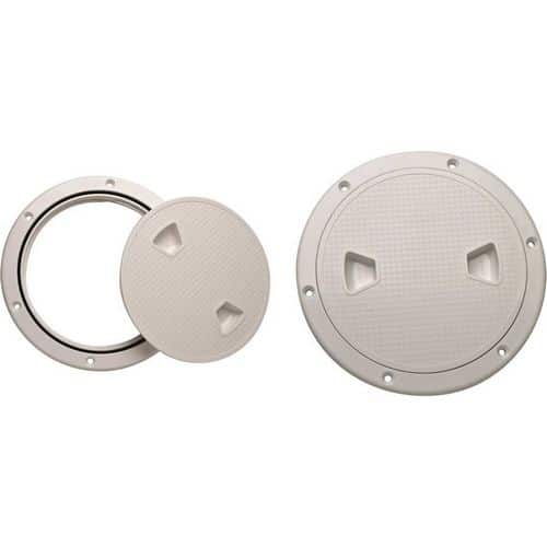 Botola rinforzata a stagno di colore bianco in ABS resistente raggi UV con chiusura a vite con guarnizione in tre versioni dimensione.