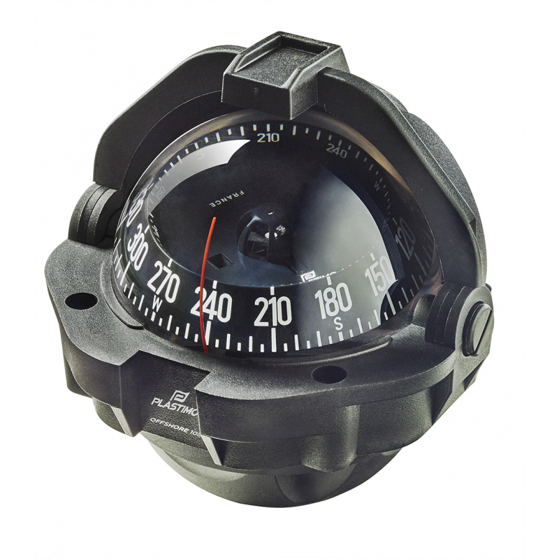 Bussola Offshore Rosa con graduazione ogni 5°con illuminazione di serie a 12-24 V LED. Calotta di protezione retrattile in tre parti scorrevoli.