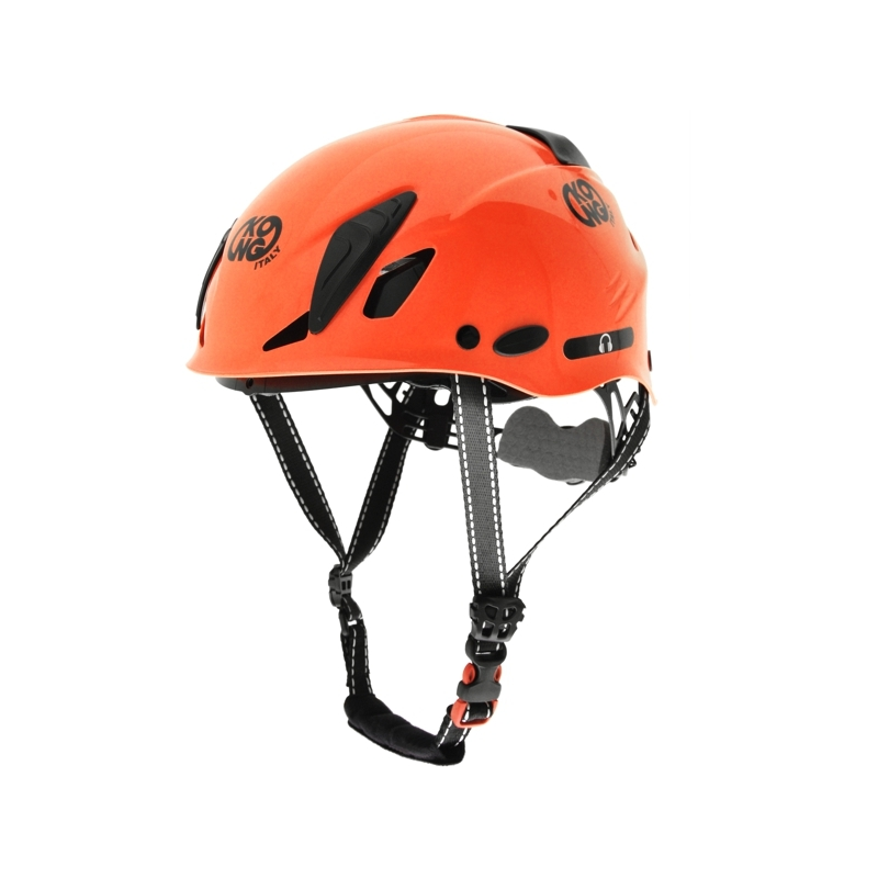 Caschetto di sicurezza realizzato in ABS. Sottogola progettato per aprirsi in caso di urto ed evitare il soffocamento. Rotella di regolazione del girotesta facilmente regolabile anche con i guanti. Calotta dotata di fori d’areazione. Ganci di posizionamento per il montaggio di una lampada frontale. Calotta pre-forata per l’installazione di visiera e cuffie antirumore e radio. Sistema interno a “ragno” con imbottitura removibile e lavabile. Taglia unica. Norma caschi industria EN 397.