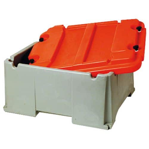 Cassetta portabatteria completa di coperchio progettata per contenere le batterie di grande capacità, da 120 A·h a 220 A·h  a norma DIN di qualsiasi marca.