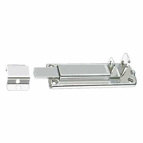 Catenaccio in acciaio inox lucidato con sistema antivibrante e predisposizione per lucchetto.