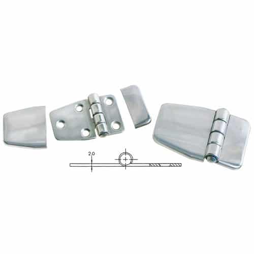 Cerniera in ACCIAIO INOX AISI 316 lucido con nodo sporgente e copriviti. Accessori ferramenta inox.