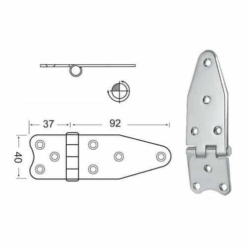 Cerniera in acciaio inox 2mm modello con nodo rovesciato 129mm x 40mm.