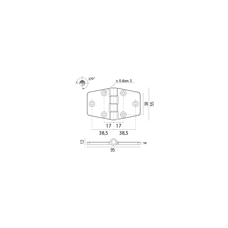 Cerniera pressofusa in ottone cromato, molto robusta.