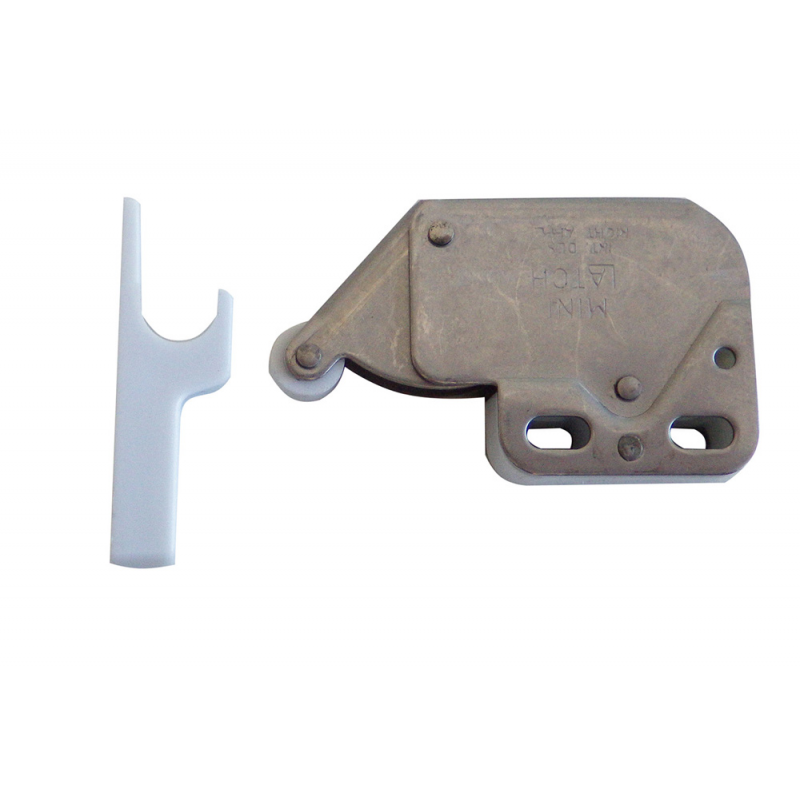 Chiusura a scatto “Mini Latch”ideale per ante e sportelli, costruita in acciaio inox e nylon. Per aprire l’anta premere sulla superficie della stessa, la pressione determina il rilascio delle molle e l’anta si apre automaticamente. Per chiudere l’anta premere delicatamente contro la sua superficie.