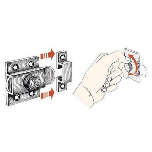Chiusura a tavella In ottone nichelato con codulo fuoriuscente tramite la rotazione del pomello.