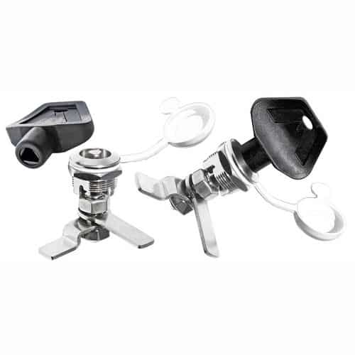 Chiusura a tavella in ottone cromato, completa di cappuccio stagno di protezione e chiave.