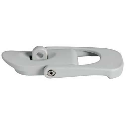 Realizzata in tecnopolimero, con portalucchetto. Apertura/chiusura assistita da una molla a scatto invisibile antivibrazione.