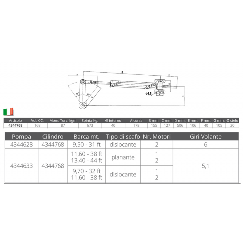 Cilindro in alluminio, bilanciato (uguale numero di giri da mezza corsa a fine corsa). Raccordi da 3/8.
