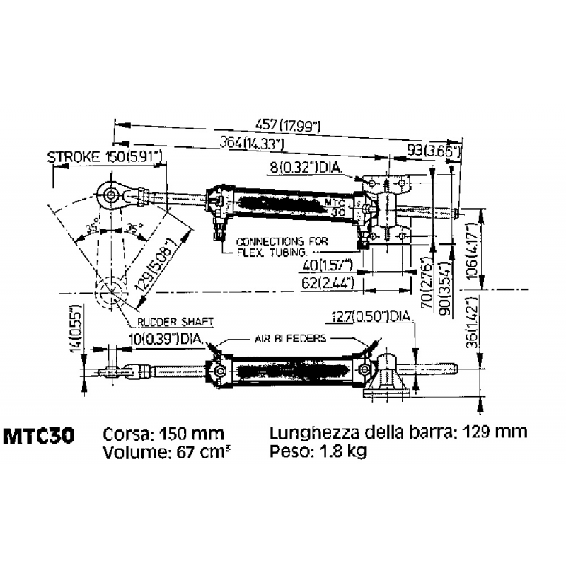 Cilindro Vetus per timoneria MT 30 per scafi da 5-7 mt.