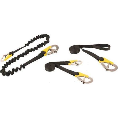 Cinghia di sicurezza in poliestere per cinture di sicurezza con moschettoni autobloccanti in acciaio inox. Certificate CE-ISO12401.