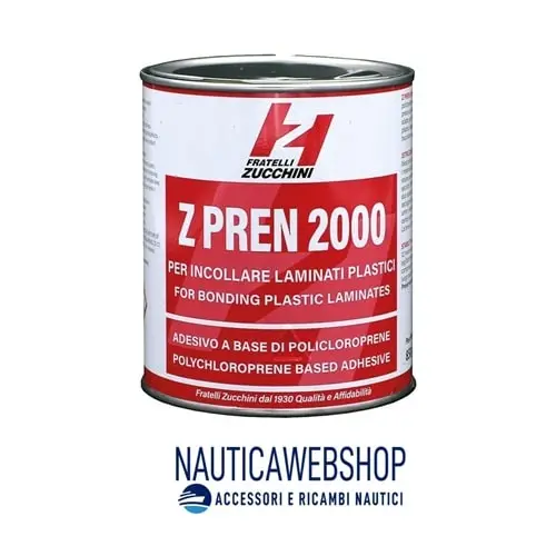 Collante adesivo monocomponente Z PREN 2000 a viscosità media da stendere a spatola per l’incollaggio di laminati plastici, tessili e moquette a truciolati, sughero, legno, compensati e metallo. Adesivo adatto per incollaggio evo teak.