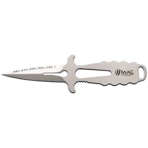 Coltello sub compatto con tagliacima e foro gira-grilli. Il manico in Acciaio Inox e lo spessore ridotto di soli 4 mm lo rendono un coltello perfetto per sub completo di fodero e cinghie. Dopo l’uso sciacquare la lama con acqua dolce e ingrassarla.