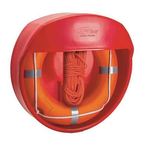 Contenitore aperto per sagola e salvagenti anulari fino a 750 mm di diametro. Può essere fissato sul supporto per creare un presidio di salvataggio.