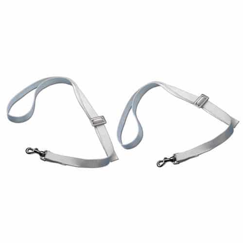 Coppia di tenditori a nastro per capottine complete di fibbia per la registrazione e di moschettoni per l’aggancio in acciaio inox.
