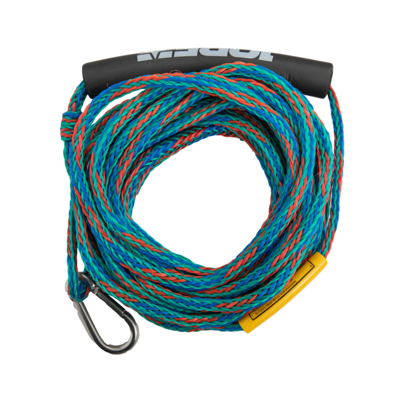 Galleggiante, dotatata di un moschettone in acciaio inox. Ideale per trainabili di capacità massima 2 persone. Carico di rottura kg. 1077. Lunghezza mt. 15,2.