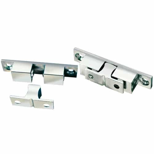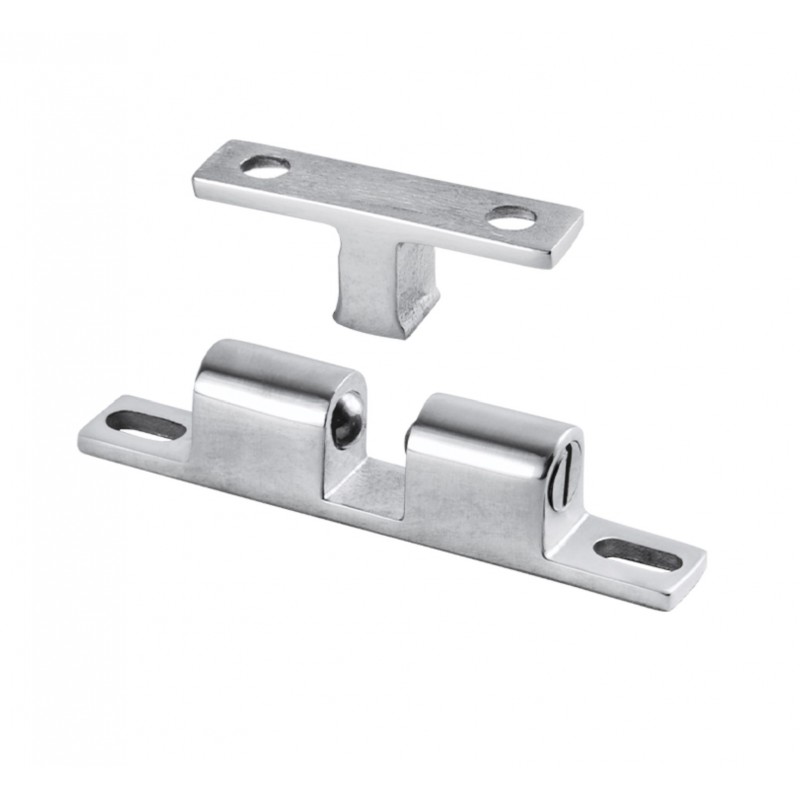 Cricchetto scrocchetto fermaporte in ottone cromato, ideale per portelli e antine a scatto con riscontro, con due sfere regolabili a vite.
