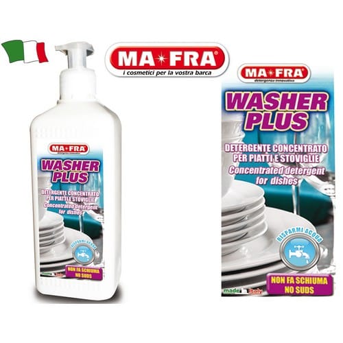 Detergente neutro concentrato, ad elevato potere sgrassante, ideale per lavare a mano piatti e stoviglie senza creare schiuma. Contraddistinto da un gradevole profumo di limone, WASHER PLUS sgrassa in modo efficace piatti, stoviglie, posate, pentole, piani di lavoro, attrezzi, lavelli e ogni tipo di superficie lavabile. Le sue caratteristiche distintive rendono WASHER PLUS adatto per essere utilizzato nei lavelli di camper e imbarcazioni. WASHER PLUS si risciacqua facilmente, senza lasciare macchie o aloni.