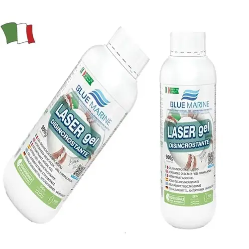 Laser gel elimina rapidamente incrostazioni e formazioni calcaree (denti di cane) sia da carene in VTR che gomma. Disincrosta piedi motore, lucida ed elimina formazioni di ruggine da eliche in ACCIAIO INOX, ottone, bronzo, ecc. Inoltre elimina linee di galleggiamento e ingiallimenti dal VTR.