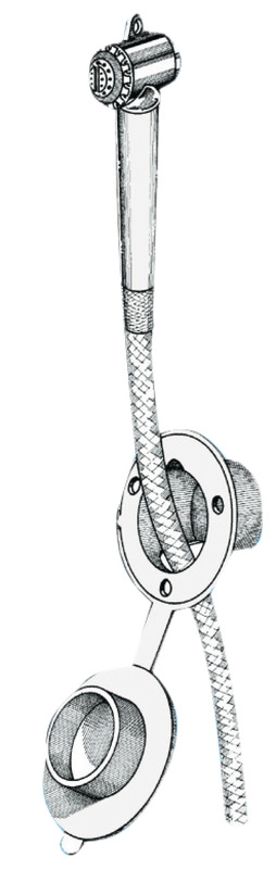 In ottone cromato con supporto ad incasso bianco in ASA UV resistente, completo di cappuccio in PVC bianco a tenuta stagna. Sporgenza interna 45 mm.