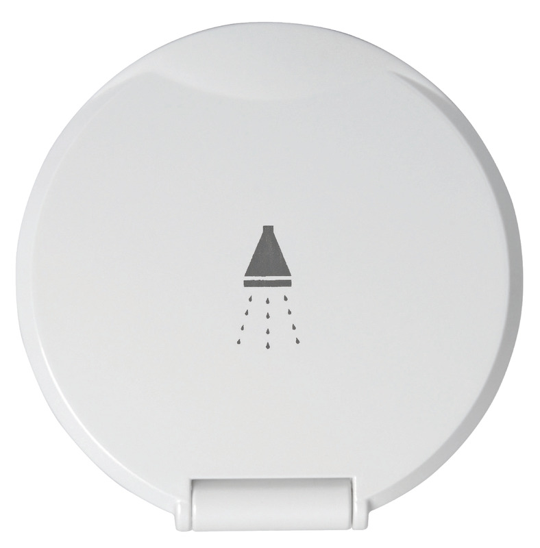Doccia in ottone cromato, vano di alloggiamento bianco in ASA UV resistente.