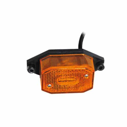 Fanale d’ingombro di colore arancione con supporto per il fissaggio.