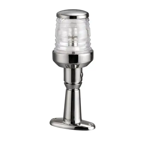 Fanale testa albero con base interamente inox con lampadina alogena. Accessori equipaggio elettrico.