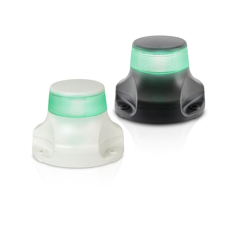 Fanali di testa d’albero per imbarcazioni fino a 50 metri. Lenti in Grilamide e cassa stagna IP67 in materiale antishock resistente a corrosione e raggi UV. Consumo ultra basso, precablati con cavi marini, dotati di circuito di protezione per picchi di tensione e inversione di polarità. Certificati MED96/98EC, CE(EMC), IMO-COLREG, USCG e ABYC. Rif. Originale 2LT 980 910-121