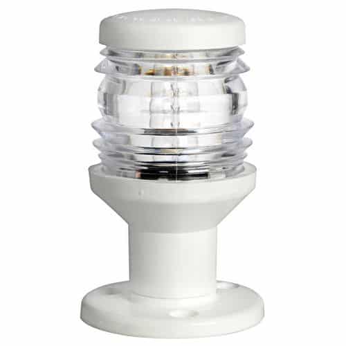 Fanalino di fonda approvato RINA in accordo al regolamento COLREG72, adatto per imbarcazioni fino a 12 m. Presentano la prerogativa di essere alimentate da una piccola lampadina alogena ad alta intensità da 5 W, allo scopo di avere dimensioni esterne ridottissime, minimo sviluppo di calore e basso consumo di corrente. Fanale testa albero o da roll bar.